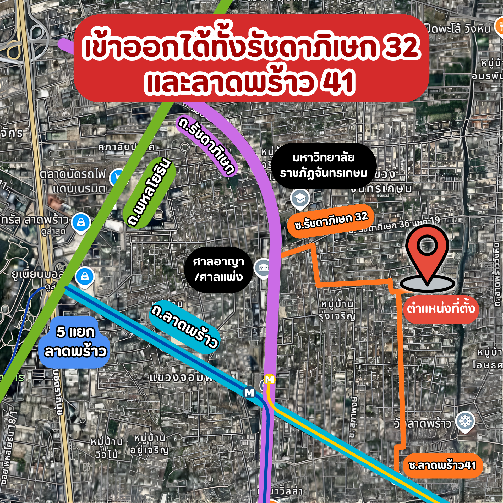 -เข้าออกได้ทั้งซอยรัชดาภิเษก 32 และซอยลาดพร้าว41
