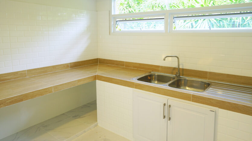 – เคาน์เตอร์ครัวเป็นท็อปลายไม้ = สไตล์มินิมอล ทำความสะอาดง่าย