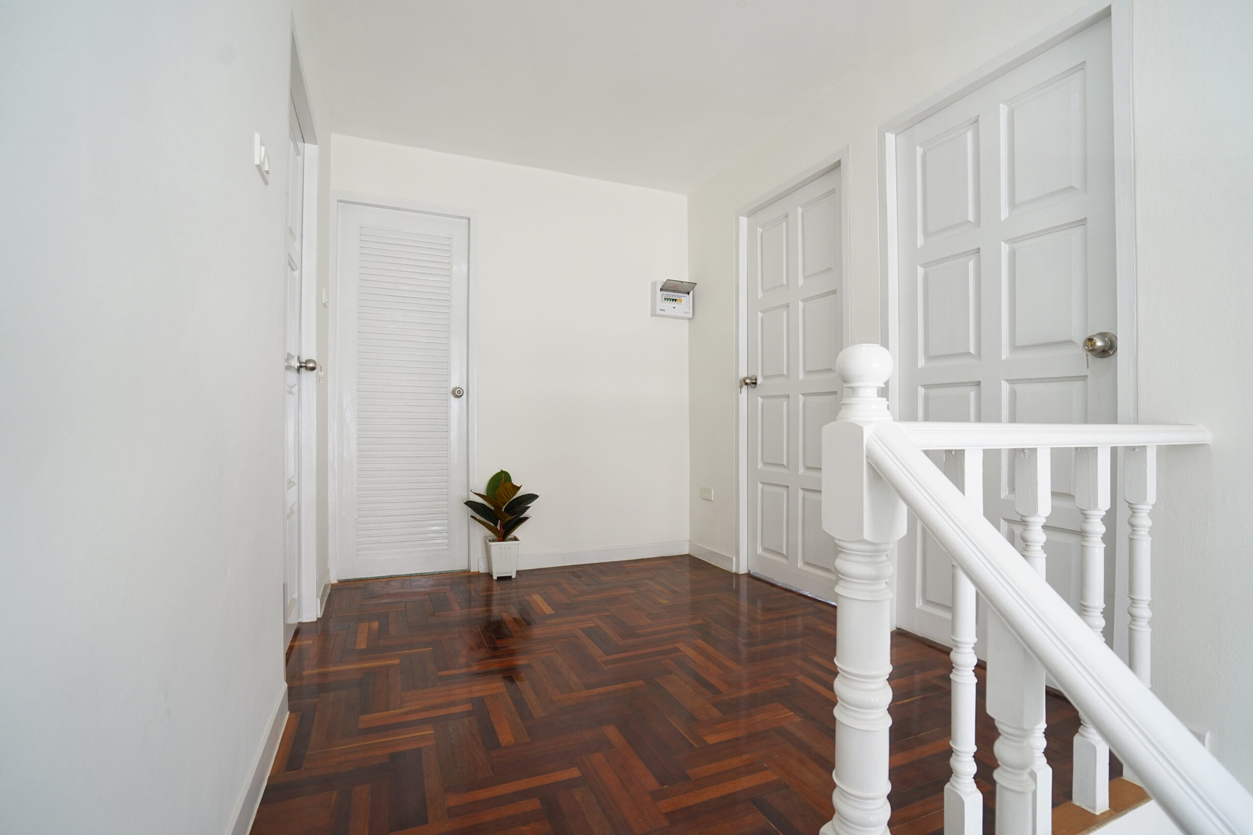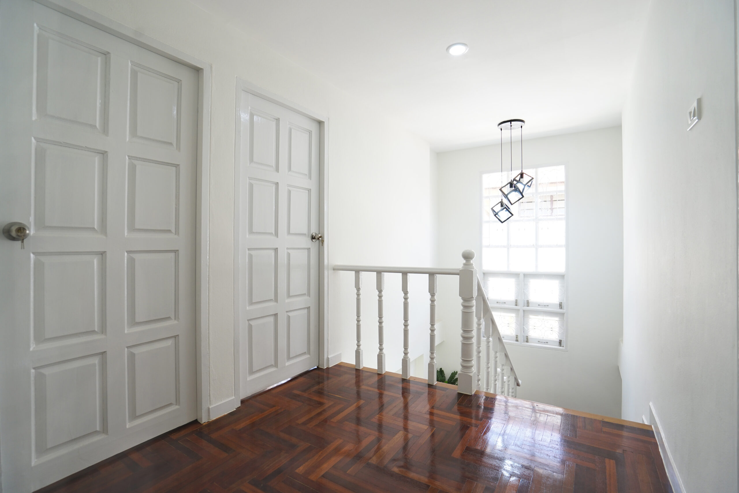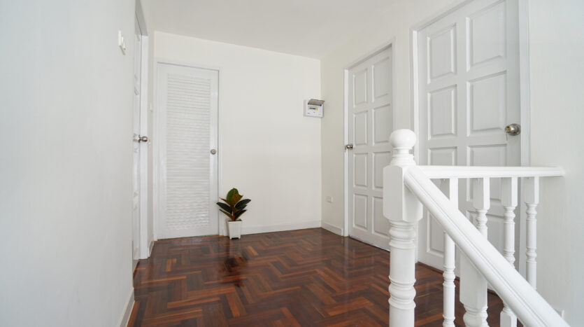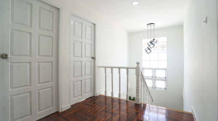 ชั้นบนปูพื้นลามิเนตลายไม้ = ให้บรรยากาศดูอบอุ่น